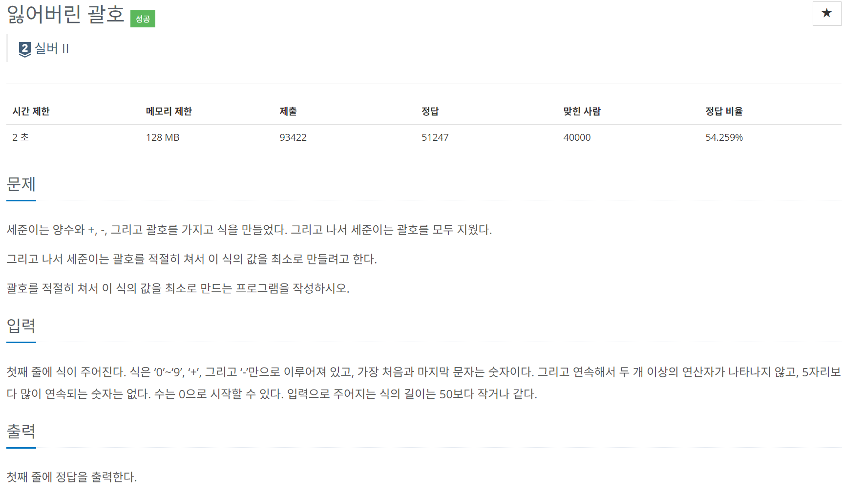 -가 나왔으므로 괄호를 쳐서 최솟값을 만들어야 하기에