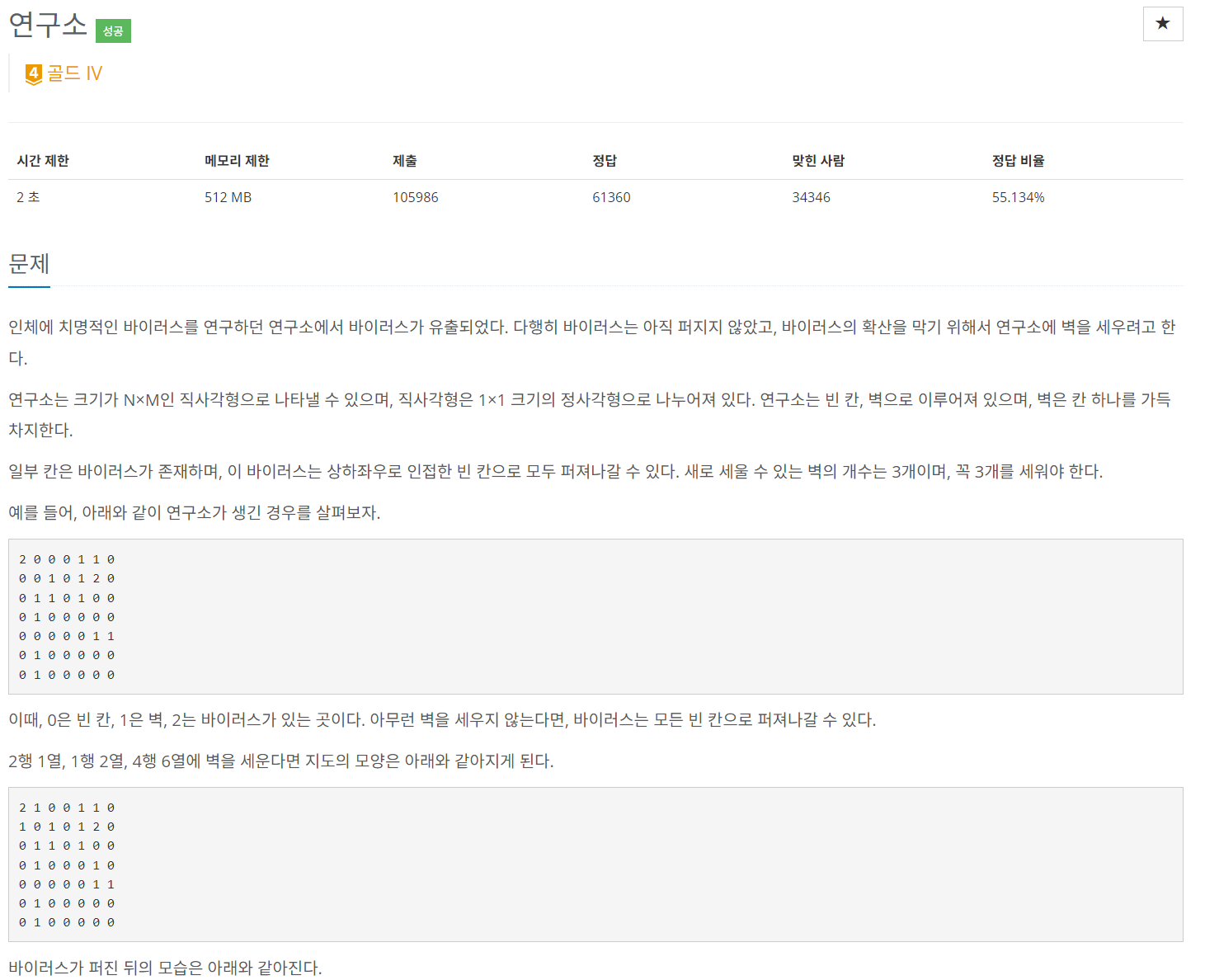 전체 크기 - (벽의 개수 + 새롭게 세운 벽 3개 + 바이러스 개수의 최솟값) 이 안전구역의 최댓값이다.
