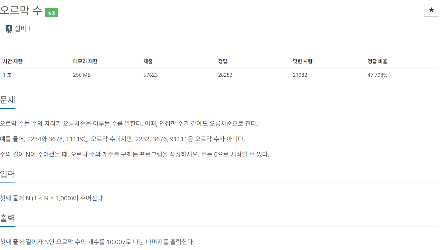 현재 깊이의 각 수는 이전 깊이의 현재 수부터 9까지의 개수 합을 더하면 된다.
