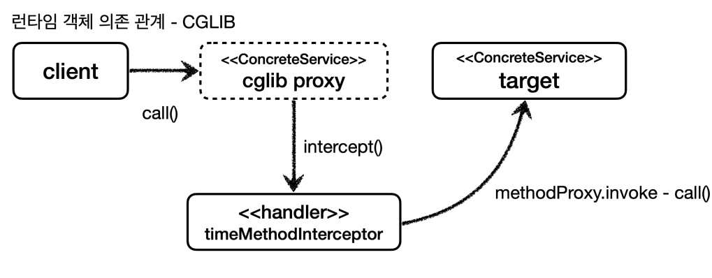 CGLIB는 JDK 동적 프록시의 InvocationHandler와 같은 MethodInterceptor 를 제공한다.