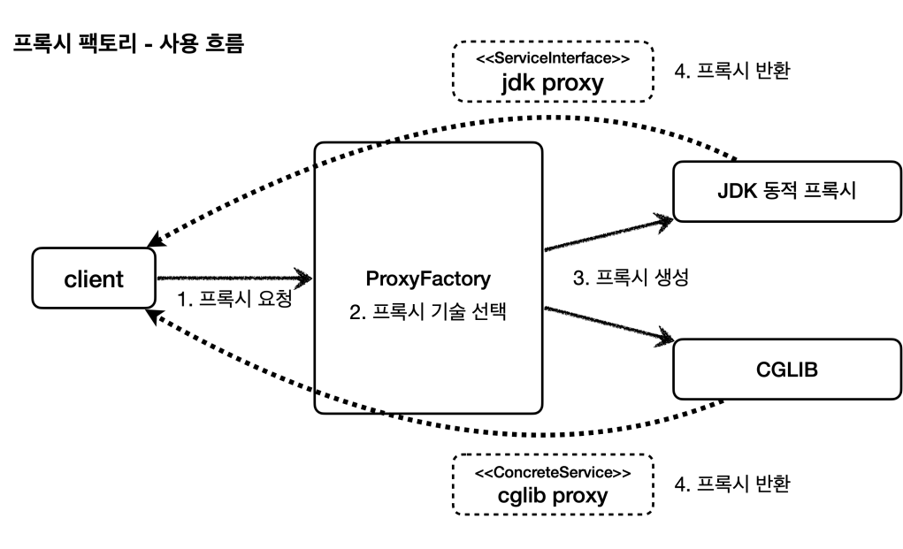 ServiceInterface proxy = (ServiceInterface) proxyFactory.getProxy(); // 프록시 반환