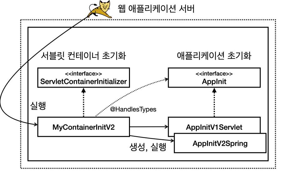 - @HandlesTypes 애노테이션에 애플리케이션 초기화 인터페이스를 지정
