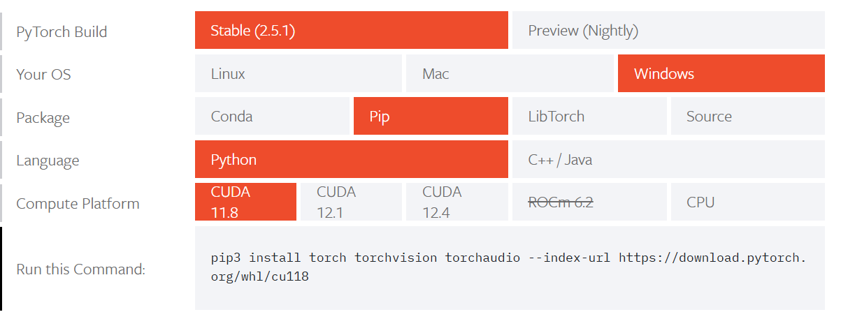 pytorch에서 Cuda 드라이버와 Pytorch에 필요한 CUDA 라이브러리를 설치하게끔 간편한 서비스를 제공한다.