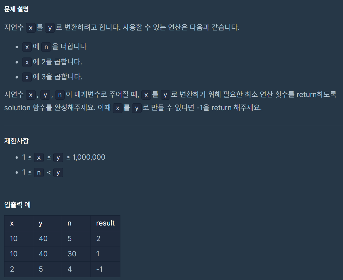 public int solution(int x, int y, int n) {