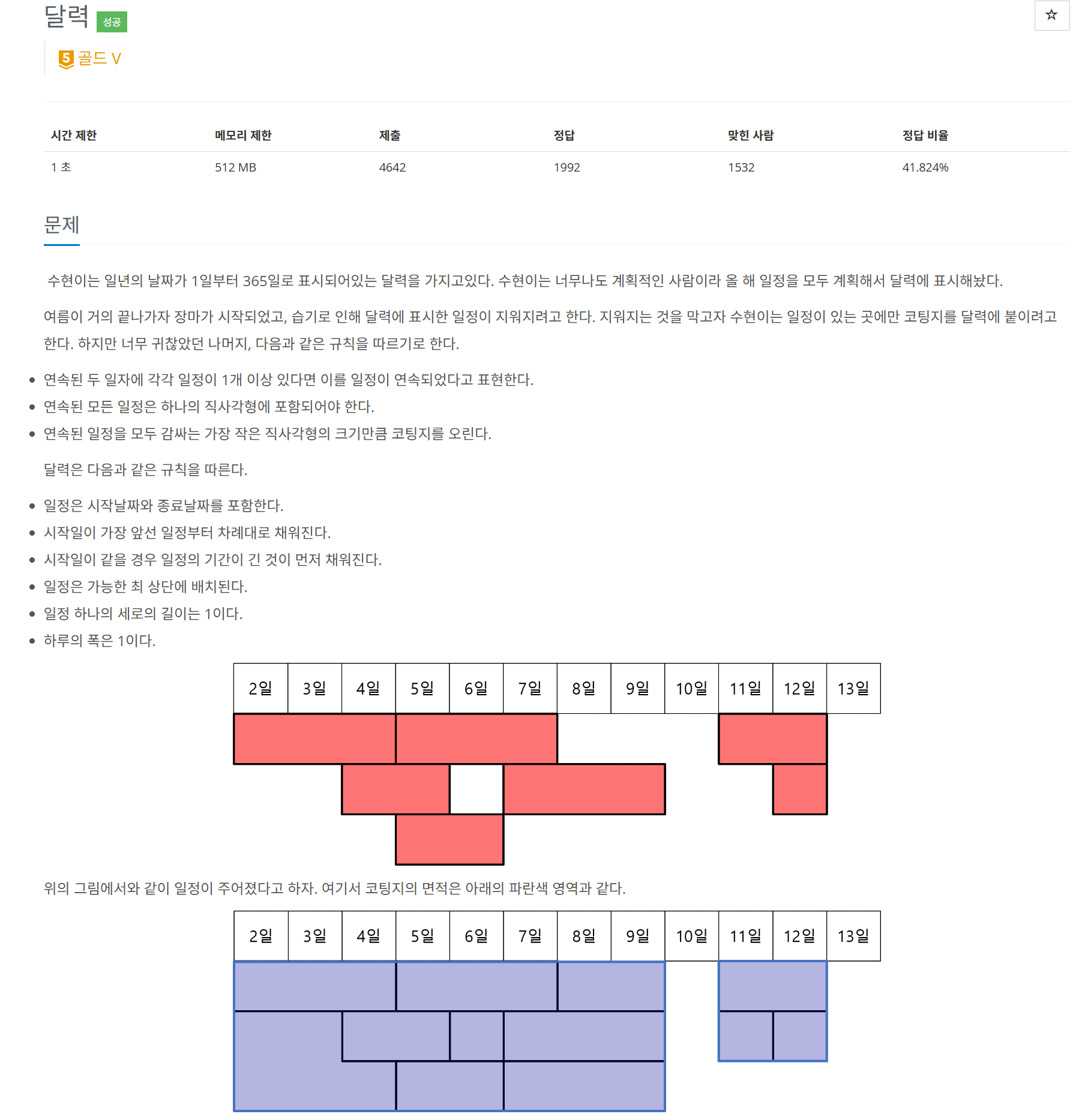 calendar[i] 의 값은 높이 즉, 중첩 일정 개수로 볼 수 있다.