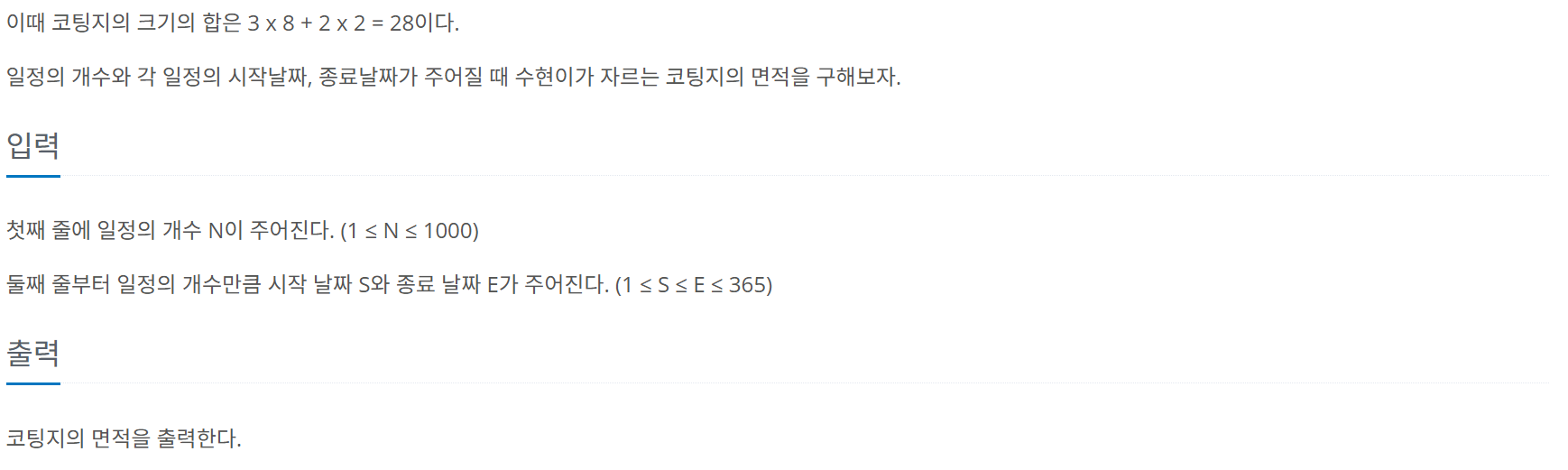 - 하지만 끝나는 일에 -1을 하면 2에서 시작해서 4에 0이 되기에 2,3 총 2일간의 일정으로 되어버리기 때문