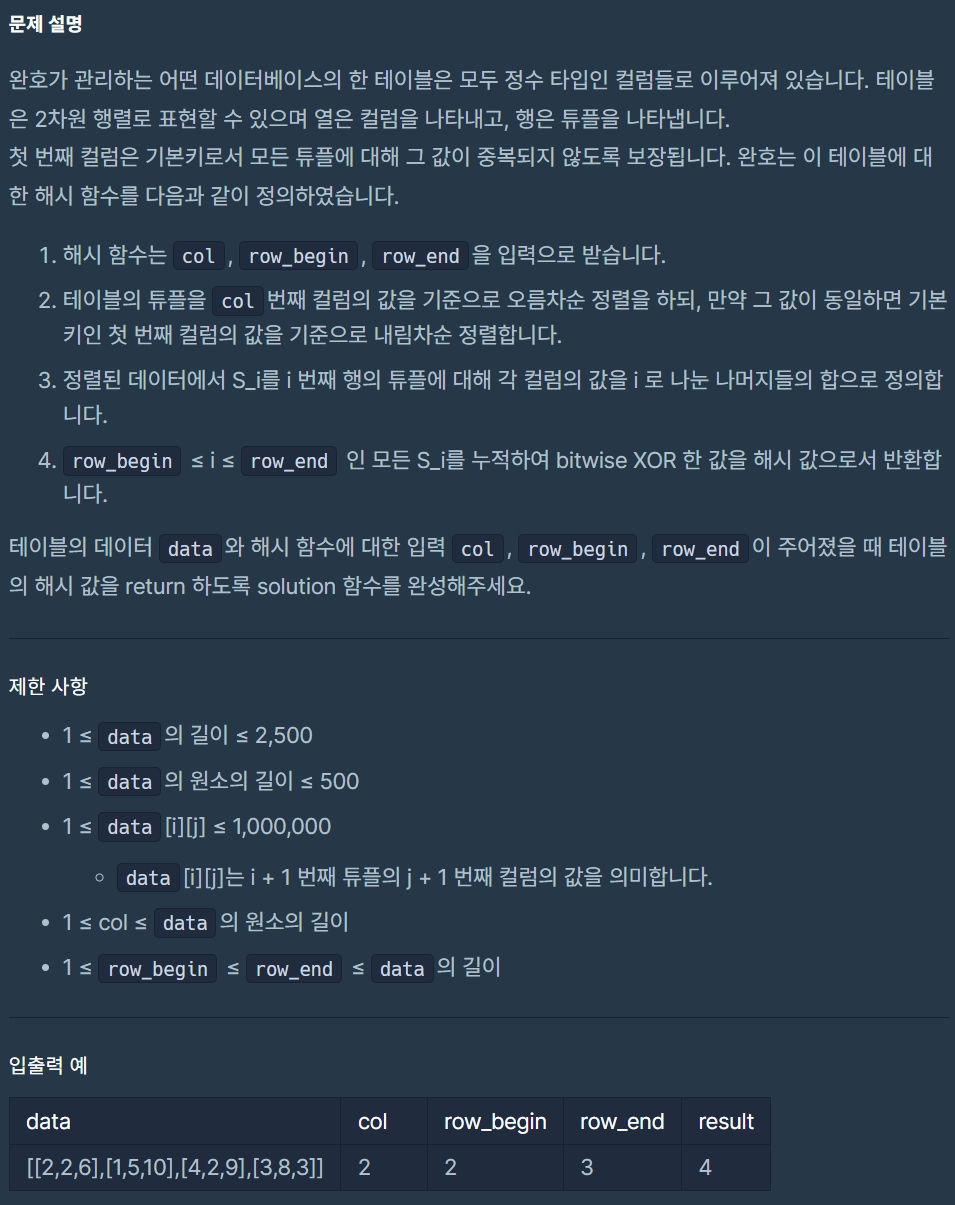 // 정렬후 S_i를 i 번째 행의 튜플에 대해 각 컬럼 값을 i로 나눈 나머지들의 합으로 정의