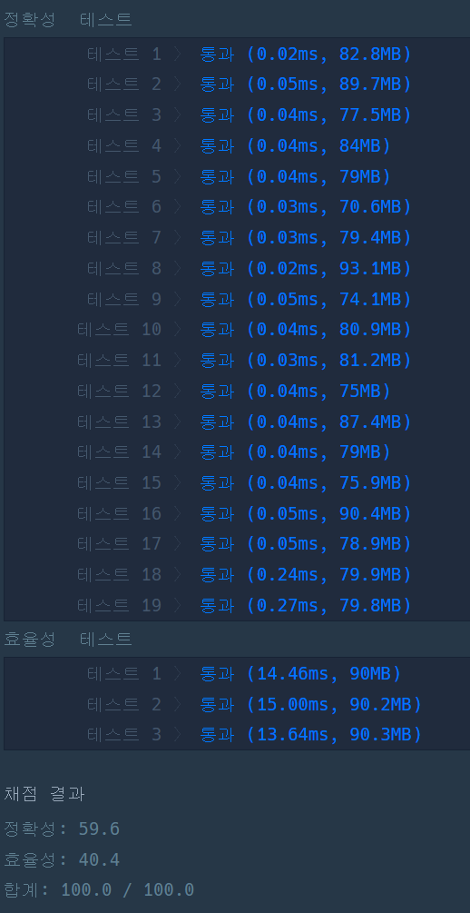 효율성 테스트에서 거의 2배 더 빠른 것을 확인할 수 있다.