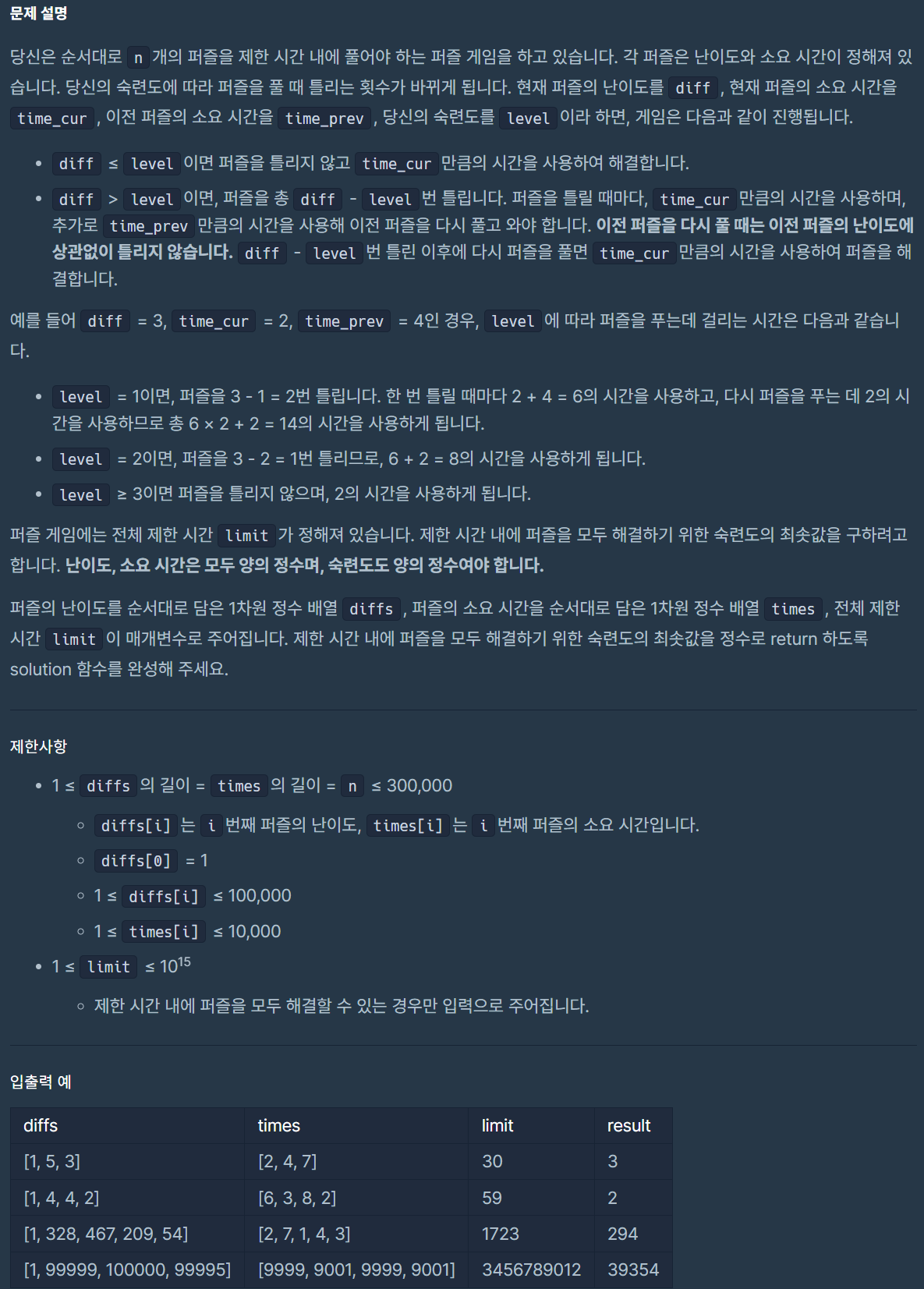 // diff > level : diff-level 번 틀림, 틀릴때 마다 time_cur만큼 시간 사용 + time_prev 만큼의 시간 사용 (이전 퍼즐 다시 품(이때 절때 틀리지 않음))