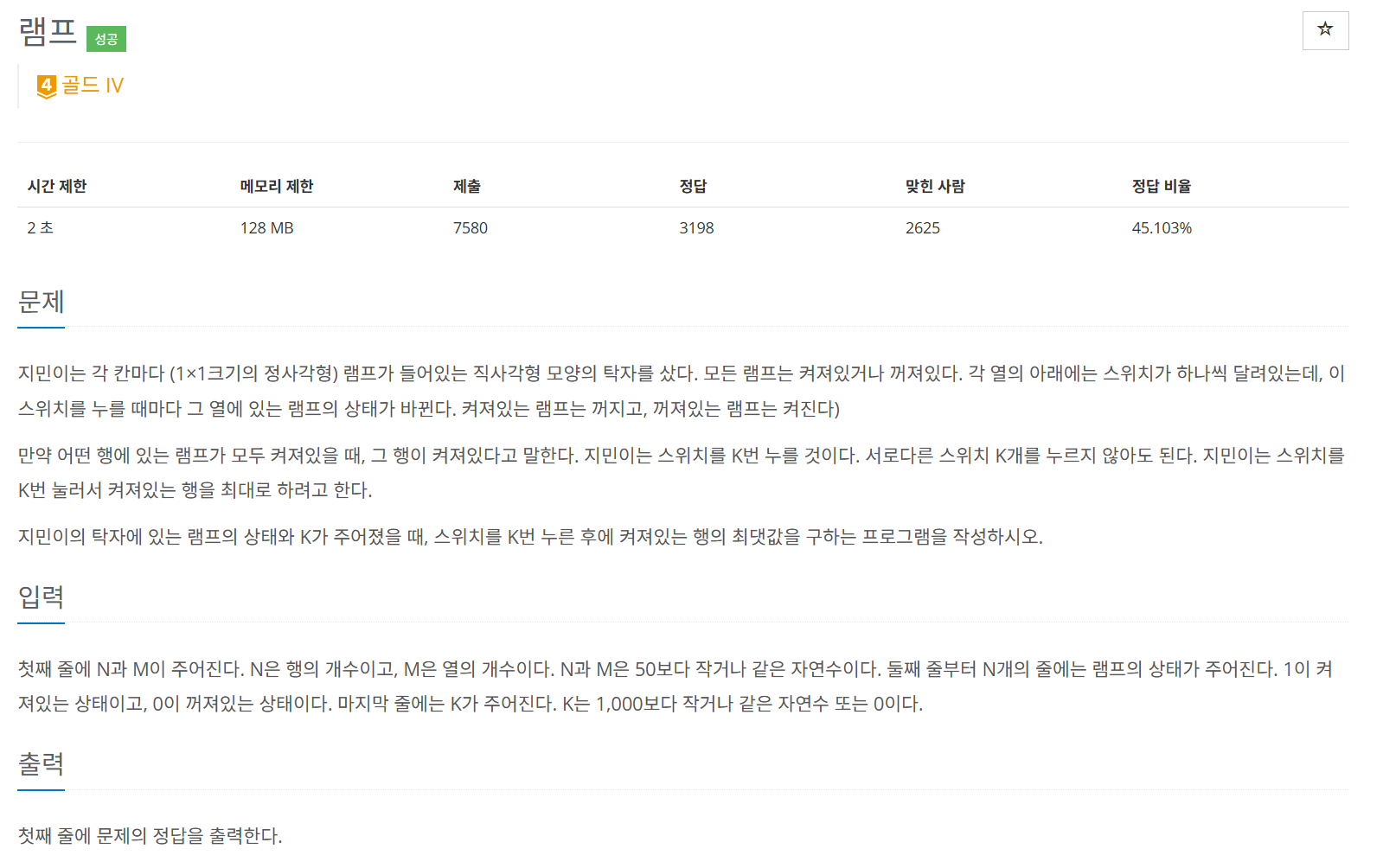 이번에는 예제를 유심히 보다가 램프 행을 전체적으로 봤을때 똑같은 패턴인 램프 행들이 있었다.