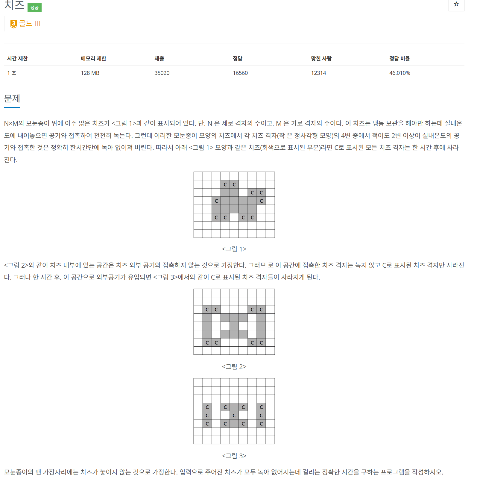 그런데 다른 풀이를 보고 했는데 치즈가 가장자리 (0,0)에서 시작할 수도 있지 않나 싶은데