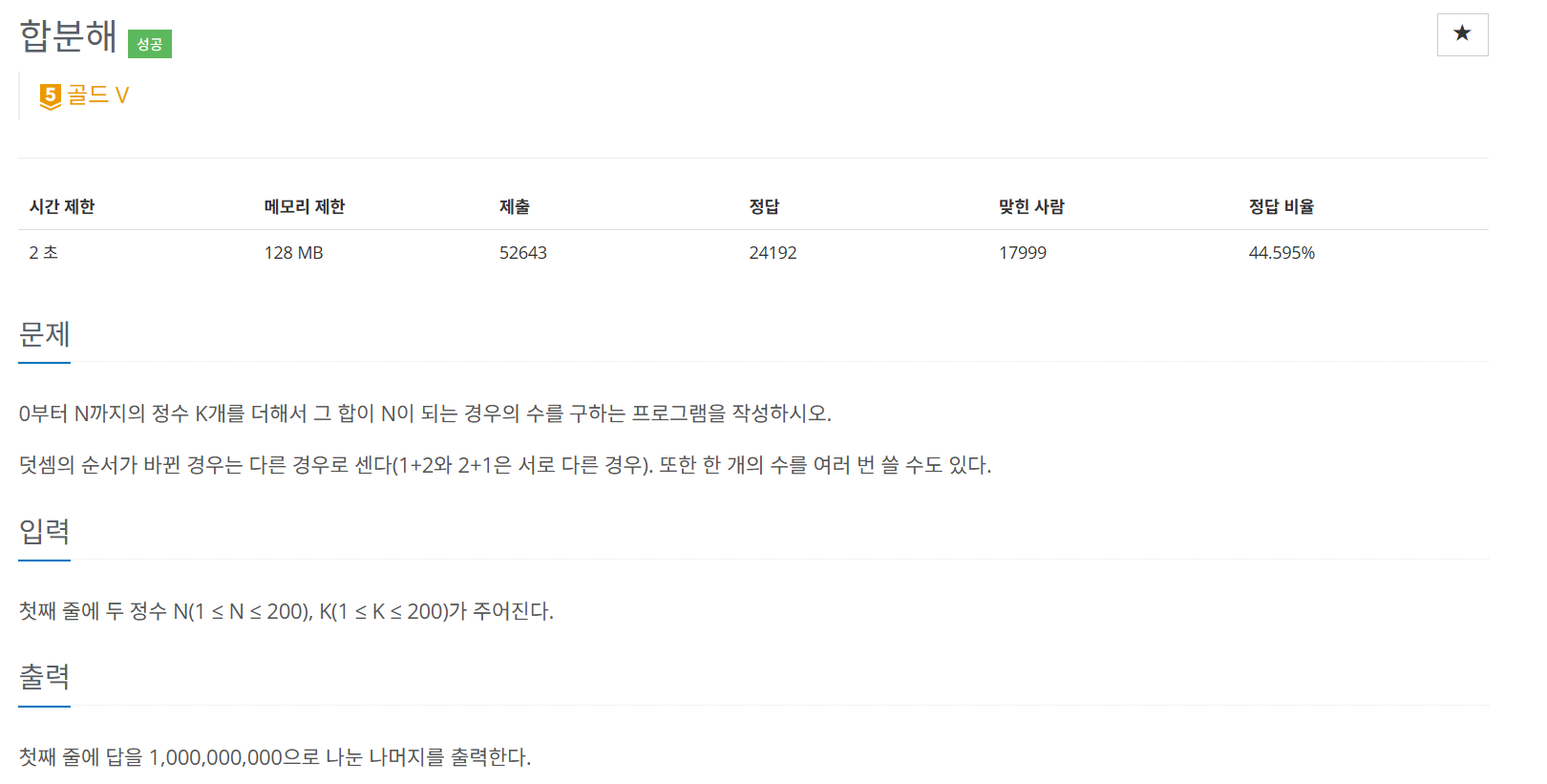 그리고 중요한 점은 문제에서 출력시 % 10억을 하라는 조건이 있으므로 잘 확인하자.
