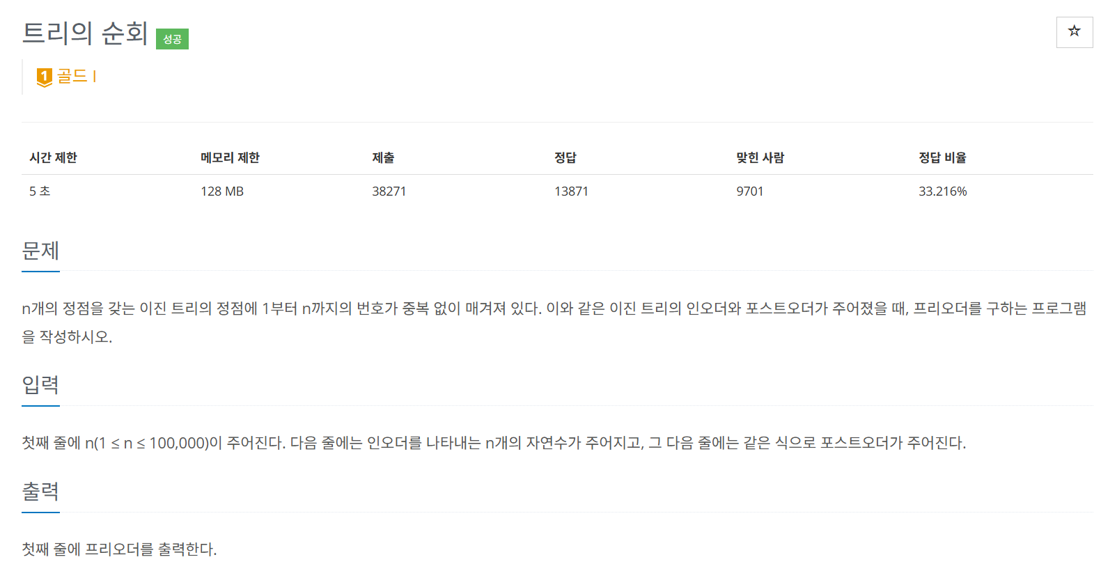 - 트리의 속성에 대해 잘 이해했다면 쉽게 풀었을텐데 아쉽다. 접근 자체는 잘 했는데 후의 순회 범위 나누는 것을 잘 못했고 구현이 어려웠다.