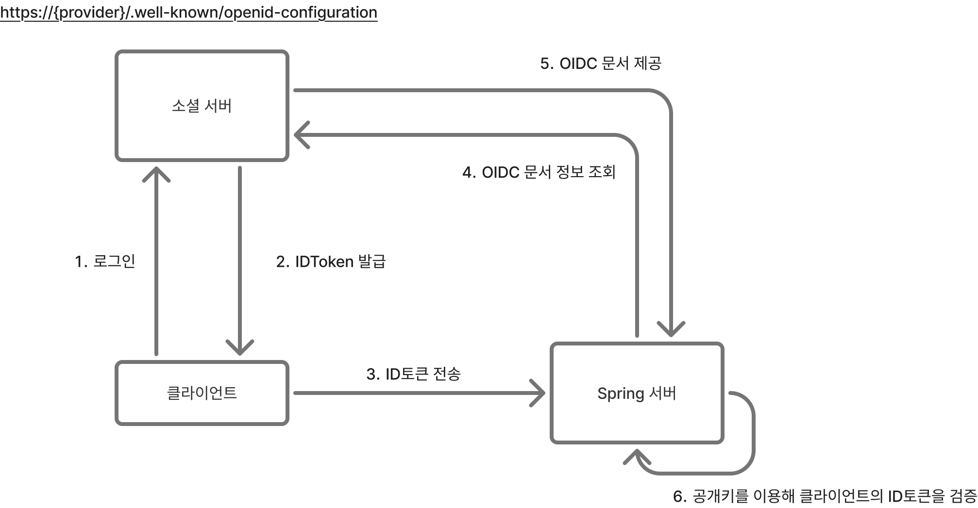 스프링 서버는 ID 토큰을 받으면 OIDC 문서 정보를 확인하여 공개키 목록 조회 URL을 획득하고