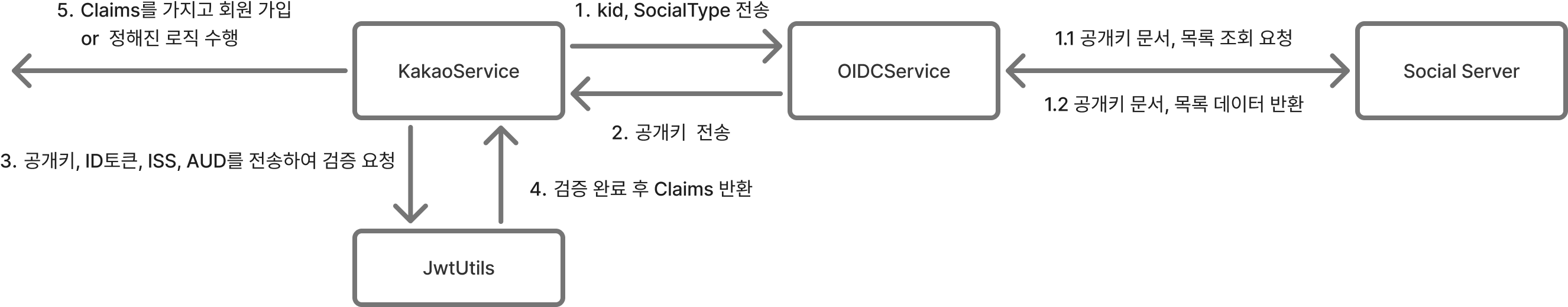 OIDCService에 보내어 kid에 맞는 공개키를 찾고 검증하는 것이다.