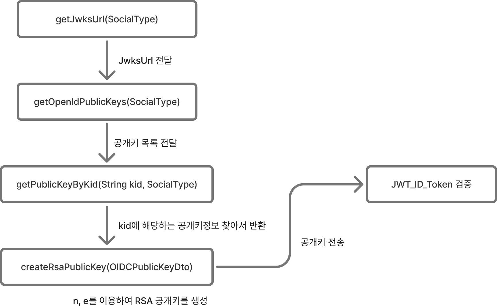 하지만 언젠가는 바뀔 수 있으므로 검증 실패시 새로운 JWKS를 조회하는 로직을 짜야한다.