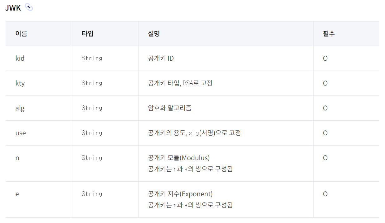 해당 주소에 요청을 보내면, 실제 RSA 공개키 정보(n, e 등)를 포함한 JWK 리스트를 얻을 수 있다.