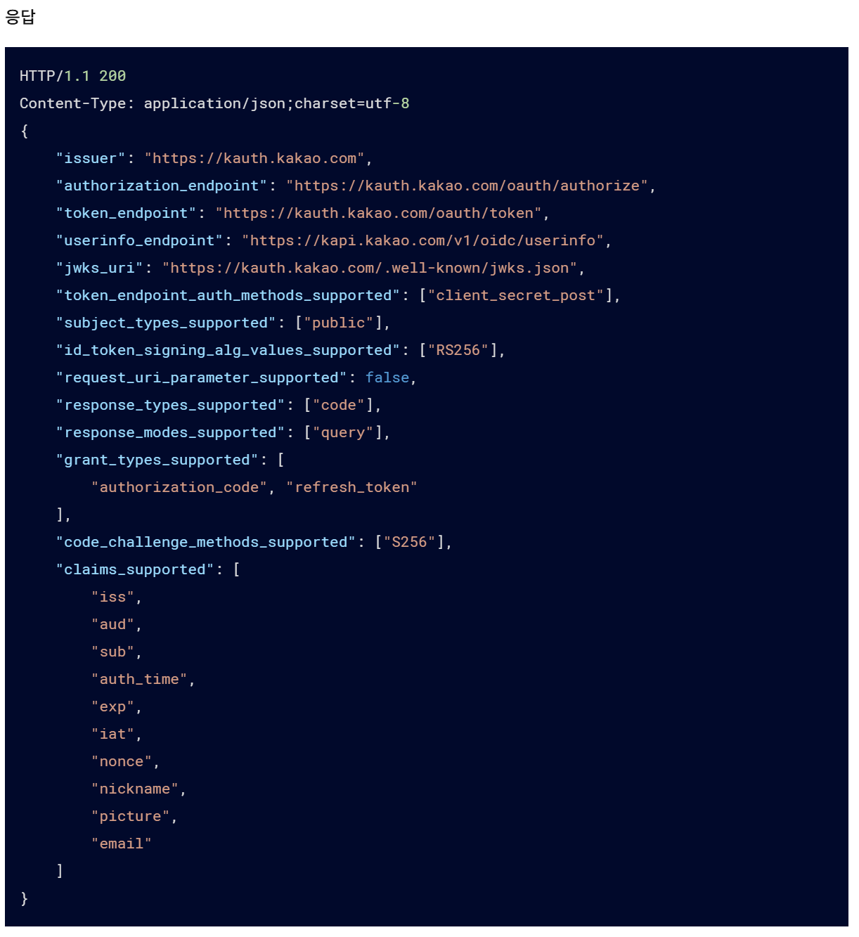 스프링 서버는 ID 토큰을 받으면 OIDC 문서 정보를 확인하여 공개키 목록 조회 URL을 획득하고