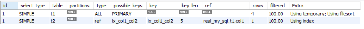 col1은 where 절에서 사용되었고 인덱스의 첫번째이므로 인덱스를 사용한 조인을 할 것이며