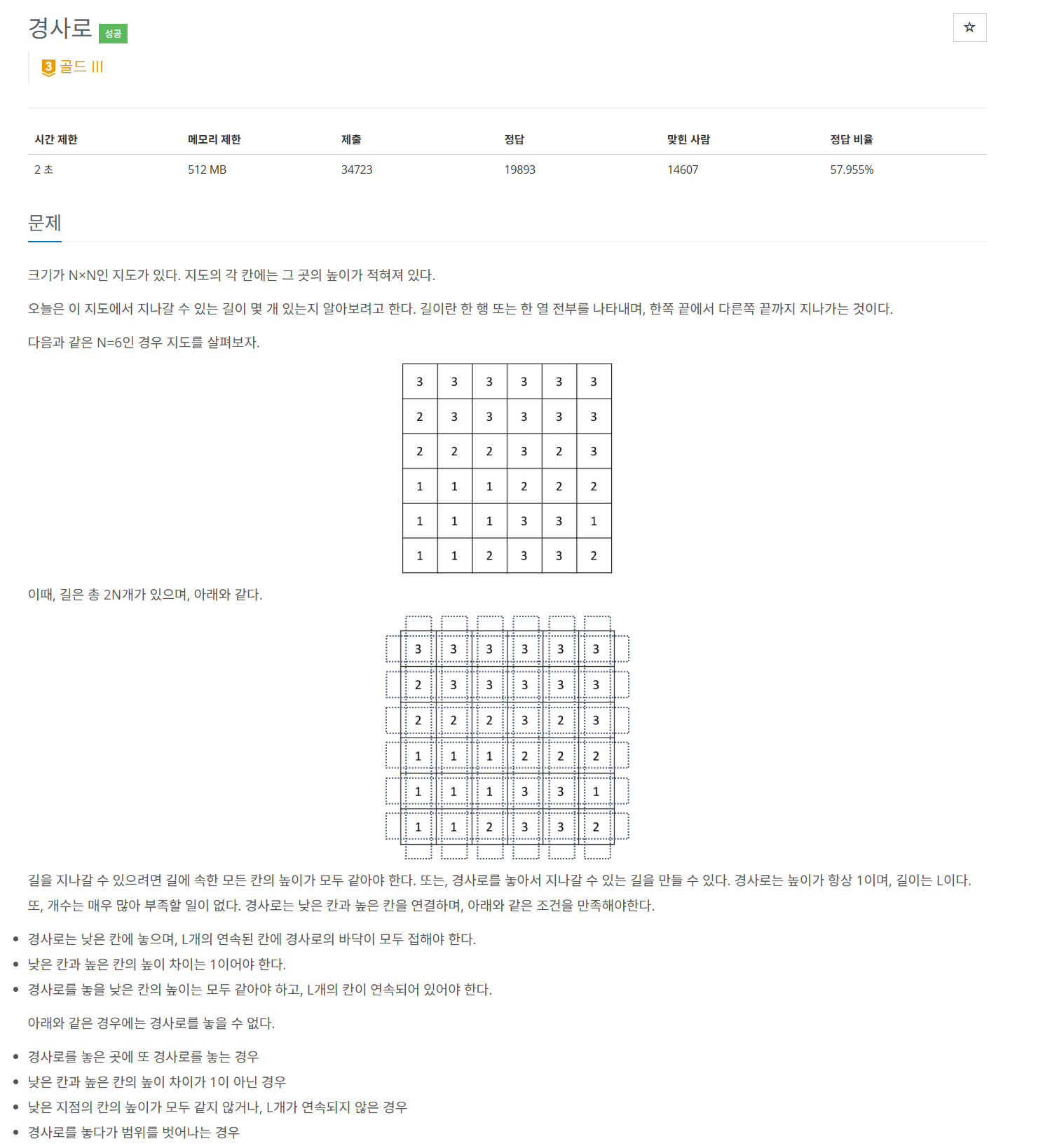 여태 센 같은 수의 개수가 경사로의 설치 기준 개수를 넘어선다면
