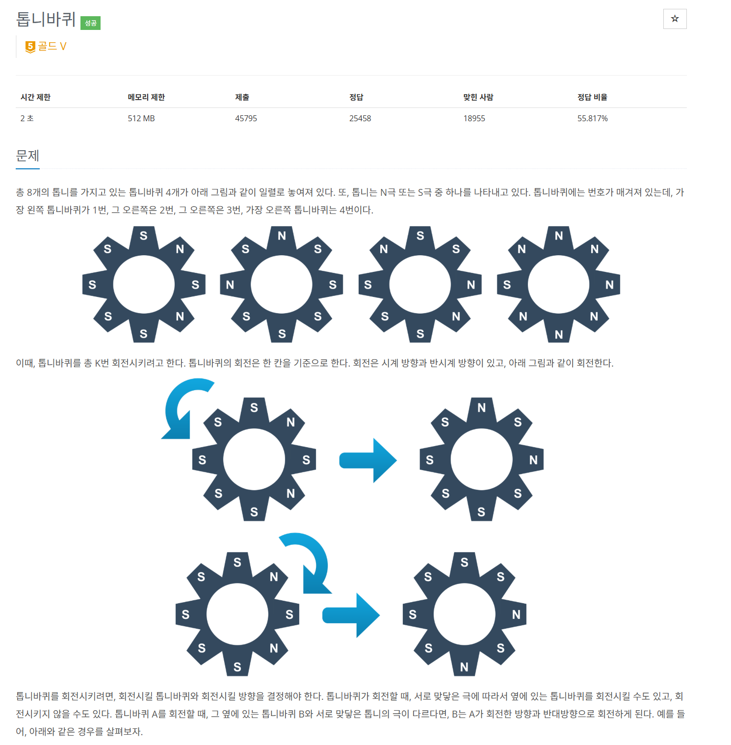 실시간 톱니가 회전된 상태에서 N, S를 비교하는게 아니라