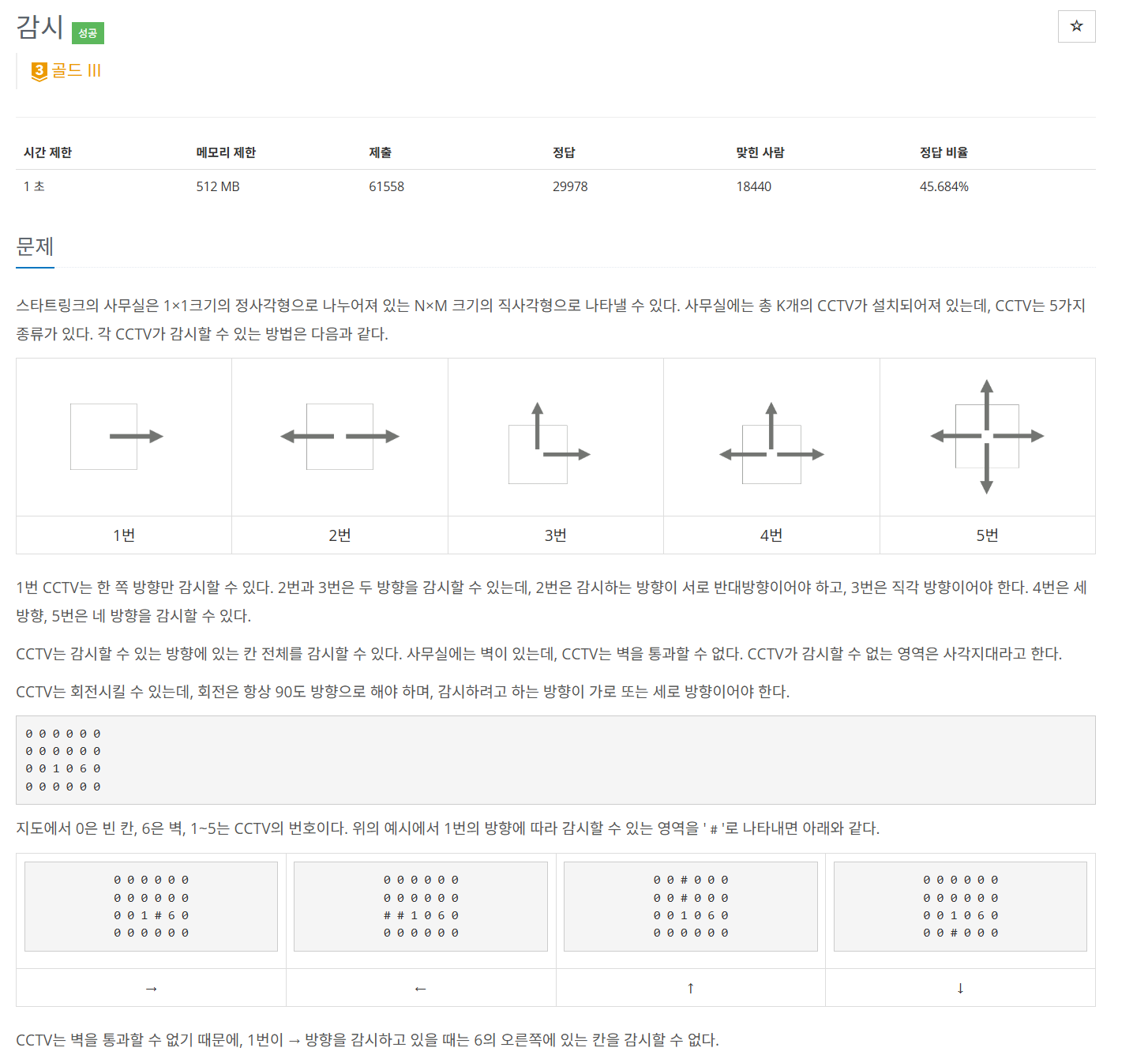 CCTV 감시 모든 경우의 수 탐색 (이미 감시한 곳은 넘어가고, CCTV를 넘어설 수 있음)
