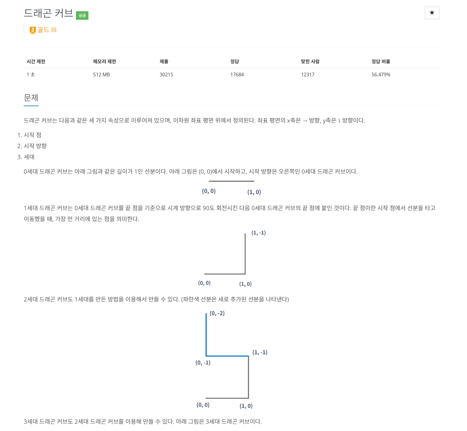 기존 드래곤 세대의 끝지점부터 시작지점 순으로 탐색하면서