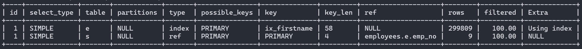 index_merge를 제외한 나머지 접근 방법은 하나의 인덱스만 사용 (즉, 접근방법 2개이상 표시 X)