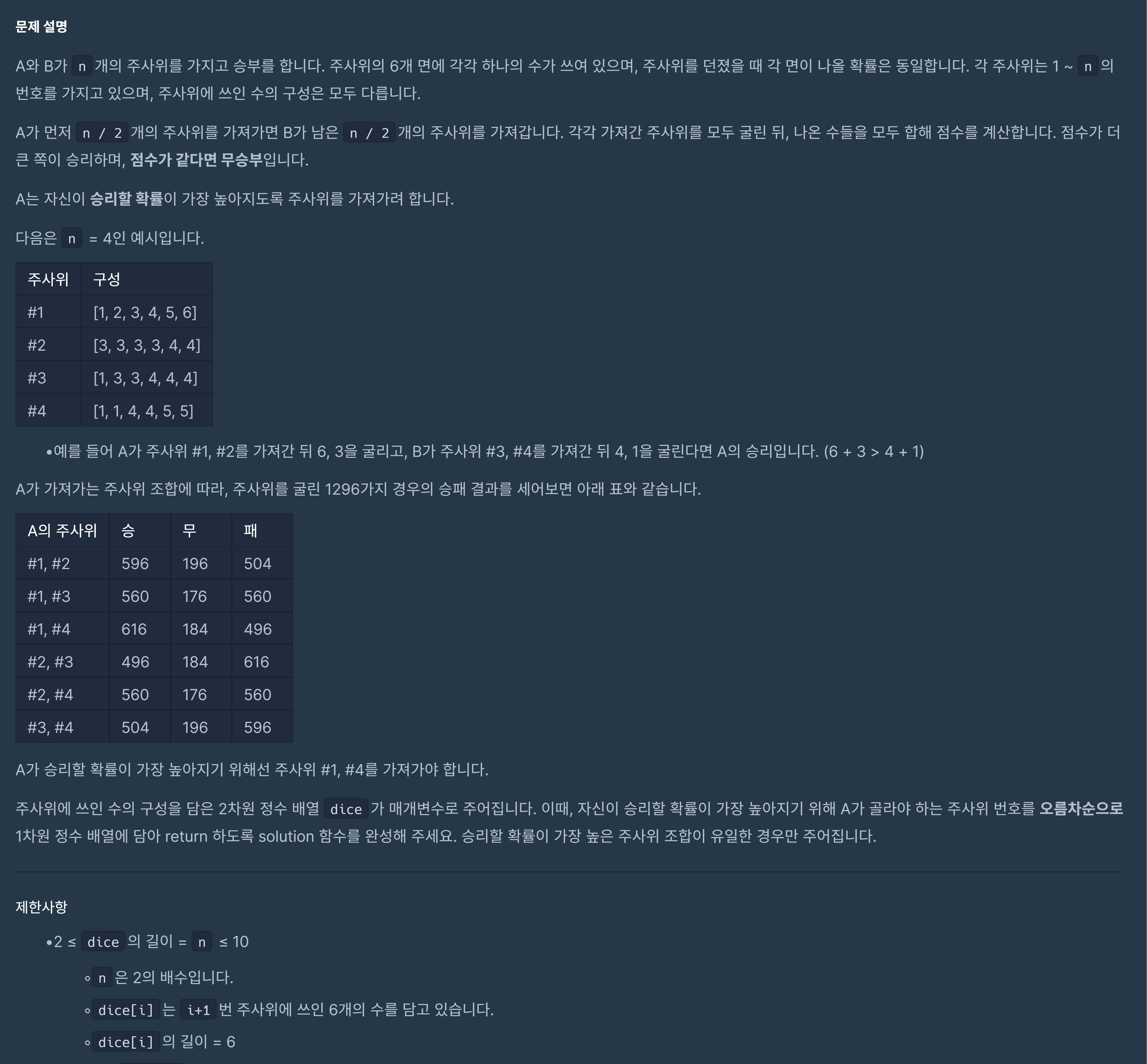 주사위의 눈의 합을 구하는 법에서 막혔다.