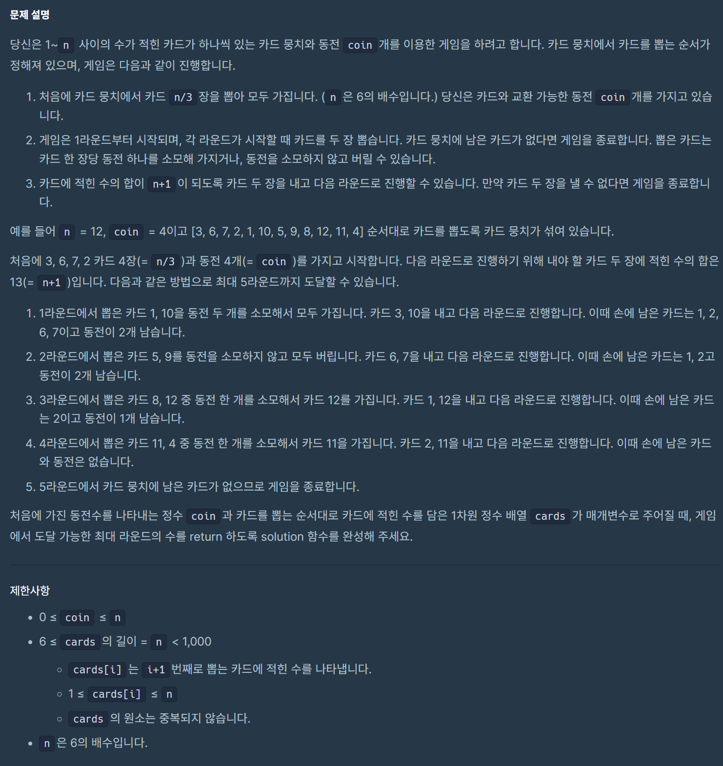 현재 가지는 코인 - 뽑은 카드 개수 >= 0 인지 확인후