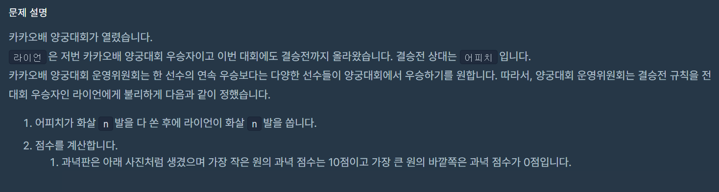 어피치가 맞춘 화살 개수보다 더 많이 맞춰야 해당 점수를 획득할 수 있다.