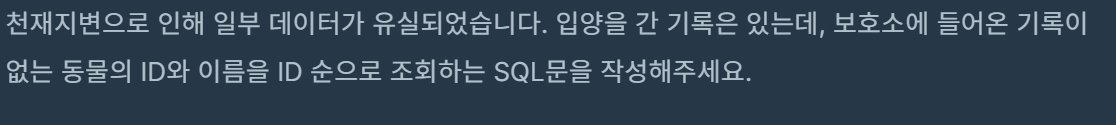 조인후 보호소에 들어온 ANIMAL_INS의 ANIMAL_ID가 NULL 이면