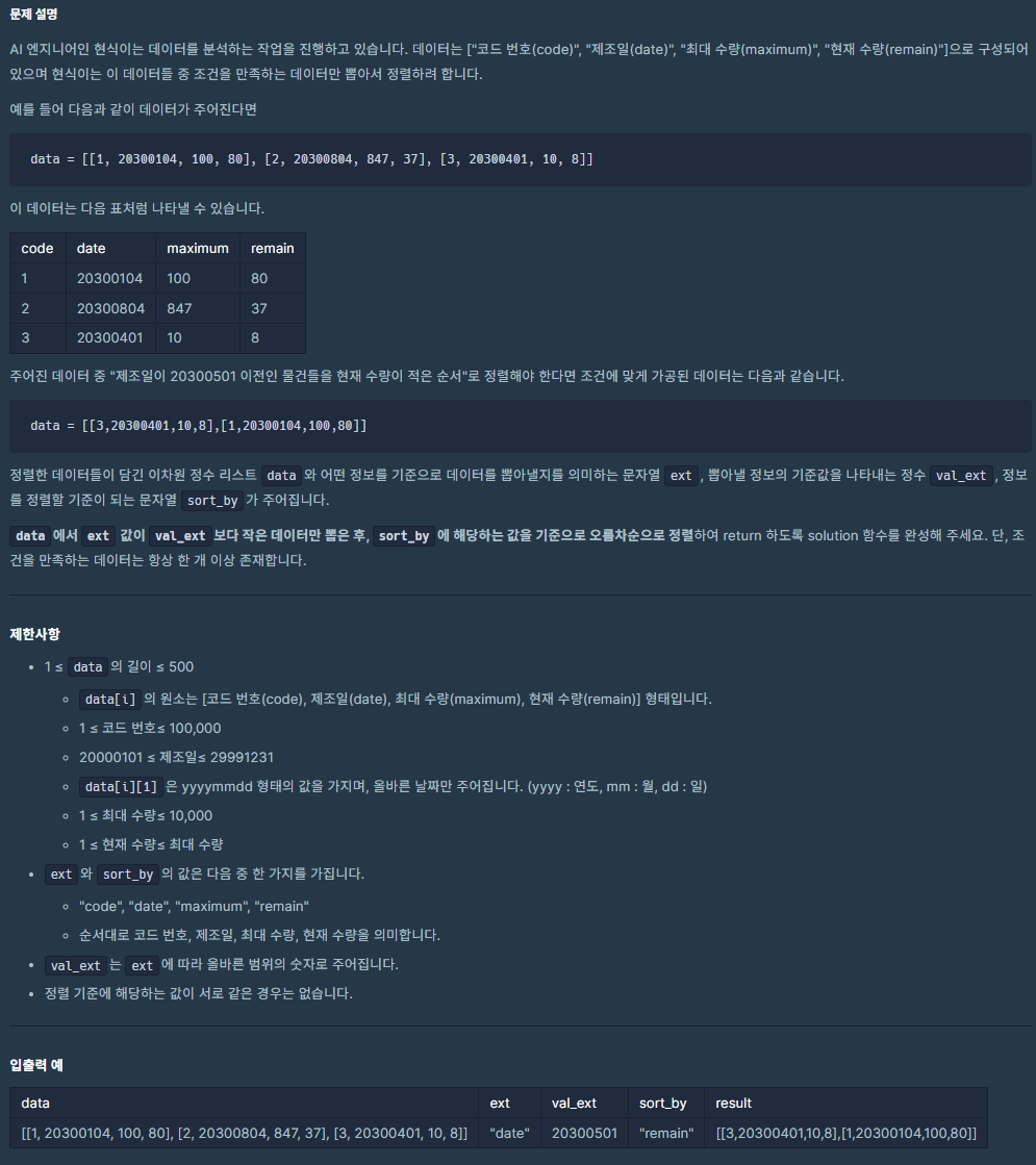 public int[][] solution(int[][] data, String ext, int val_ext, String sort_by) {