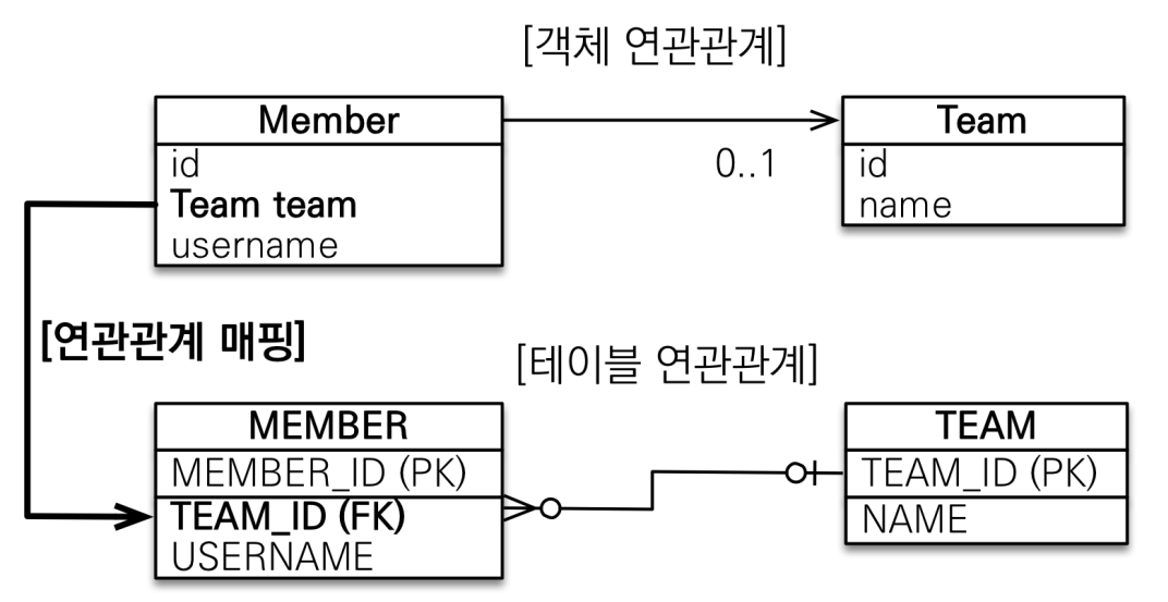 테이블은 외래 키를 매핑(조인)하여 연관된 테이블을 찾는다.