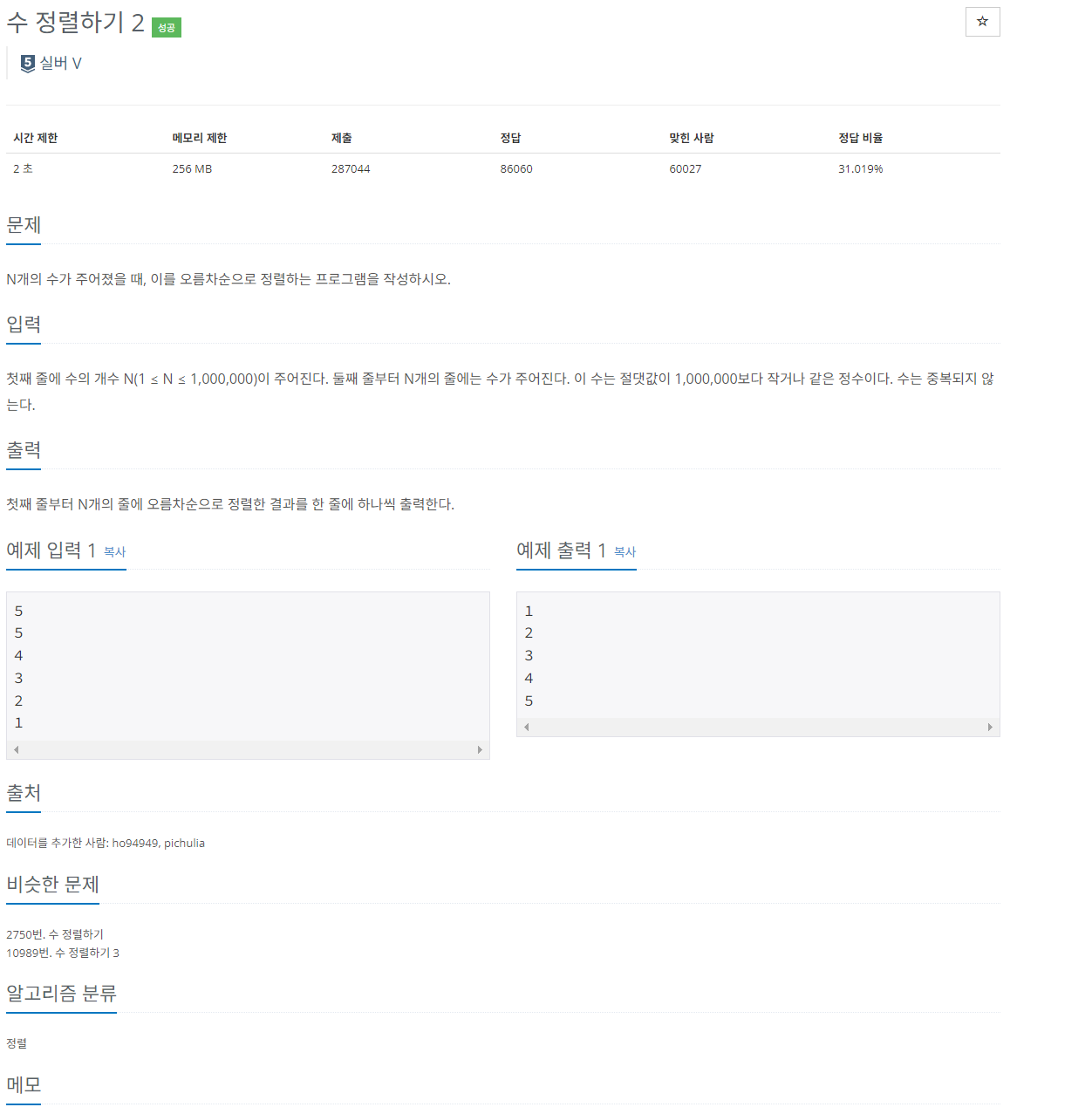 2751번: 수 정렬하기 2