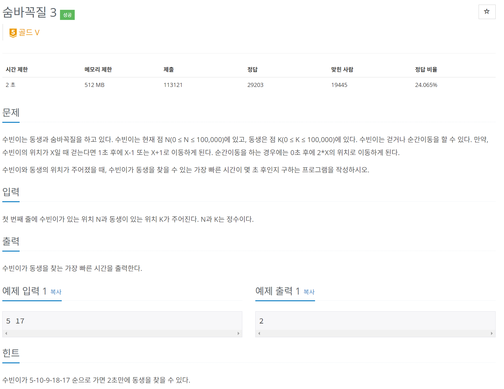 - x - 1, x + 1, x * 2 인 노드를 bfs로 x(수빈)이가 k(동생)을 찾을때까지 반복하여 탐색한다.