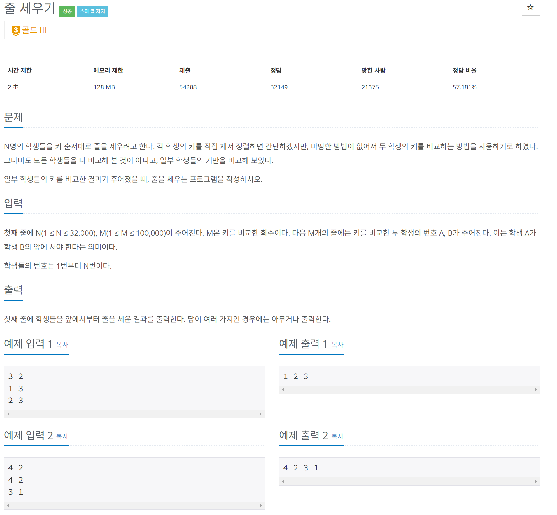 위상정렬에 대해서 공부하고 나서 풀었다.