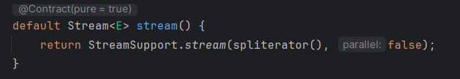 Collection의 stream() 메서드는 default로 정의하고 있다.